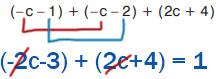 3-) ( –c – 1) + (–c – 2) + (2c + 4) işleminin sonucunu bulunuz.