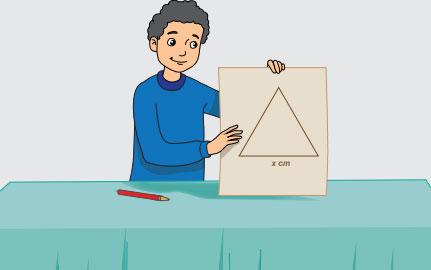 Cevap: Cengiz, kartondaki eşkenar üçgenin çevre uzunluğunu hesaplamak için x + x + x = 3x şeklinde bir yol izleyebilir. Bunun yerine kısa yoldan 3.x = 3x sonucunu da elde edebilir.