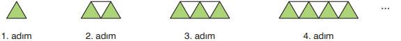 a) Şekil örüntüsünün her bir adımı ile o adımdaki eşkenar üçgen sayısı arasındaki ilişkiyi belirten cebirsel ifadeyi yazınız.