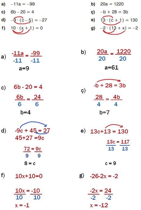1. Aşağıdaki denklemlerde bilinmeyenlerin değerlerini bulunuz.