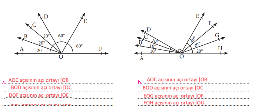 2. Aşağıda verilen açıların açıortaylarını belirleyiniz
