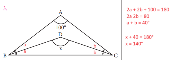 3. Şekilde verilen ABC üçgeninde [BD] ve [CD] açıortaydır. Buna göre x açısının ölçüsü kaç derecedir?