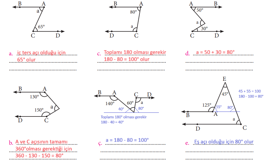 3. Aşağıdaki örneklerde [AB ∕∕ [CD ise a değerlerinin kaç derece olduğunu bulunuz.