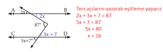 4. Yukarıdaki şekilde AB ∕∕ CD ise x değeri kaçtır?