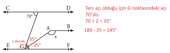 5. Yukarıdaki şekilde CD ∕∕ EF ∕∕ [AB ve [GA açıortay olduğuna göre x değeri kaçtır?