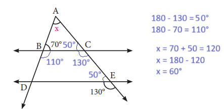 2. Yukarıdaki BC ∕∕ DE olduğuna göre x değeri kaç derecedir?