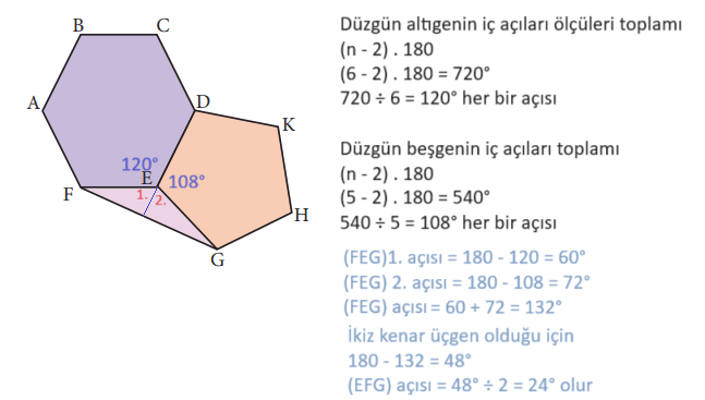 11. ABCDEF düzgün altıgen DEGHK düzgün beşgen ise EFG’nın ölçüsü kaç derecedir?