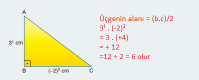 3. Yandaki ABC dik üçgeninde [AB] ⊥ [BC], |AB|= 3¹ cm, |BC|= (–2)² cm’dir. Buna göre ABC dik üçgeninin alanı kaç cm²dir?
