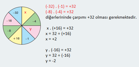 Aynı renkli bölgelerdeki tam sayıların çarpımları birbirlerine eşit olduğuna göre sarı ve pembe renklerdeki boş bölgelere yazılması gereken tam sayıların toplamı kaçtır?