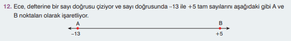 Ece, –13 ile +5 tam sayılarının arasını üç eş parçaya ayırıyor ve C ile D noktalarını belirliyor. Buna göre C ile D noktalarının belirttiği tam sayılar aşağıdakilerden hangisi olabilir?