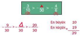 3. Yandaki kutucukta verilen sıralamaya göre ▲ yerine yazılabilecek en büyük ve en küçük tam sayıların toplamı kaçtır?