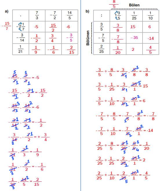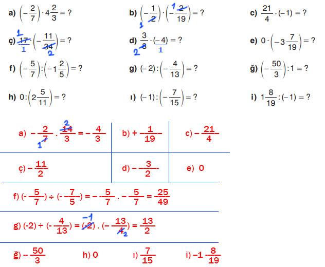 7.Sınıf Matematik Ders Kitabı EDAT Yayınları 75-85-86-87-90. Sayfa Cevapları Rasyonel Sayılarla Çarpma ve Bölme İşlemleri