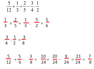 6. 5/12 + 1/3 ÷ 2/5 – 3/4 . 1/2 işleminin sonucu kaçtır?