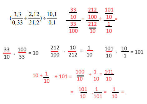 2. (3,3/0,33 + 2,12/21,2 ÷ 10,1/0,1) işleminin sonucu kaçtır?