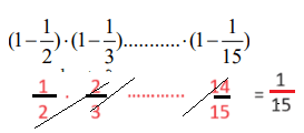 1. (1-1/2) . (1-1/3) ….. . (1-1/15) işleminin sonucu kaçtır?