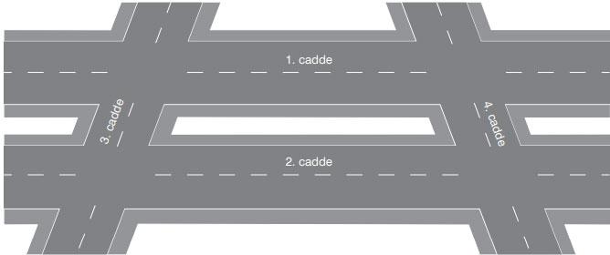 Oktay Bey, bir araştırma yapıyor ve araştırmasında bir bölgedeki paralel olan 1 ve 2. caddeleri ve bu caddeleri kesen 3 ve 4. caddeleri görseldeki gibi çiziyor. Oktay Bey’in araştırmasında caddeler arasında oluşan eş ve bütünler açıları belirlemesi gerekiyor.