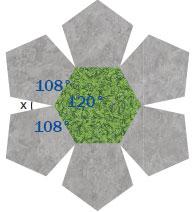 3. Düzgün altıgen şeklindeki bir yeşil alanın çevresine, kenarları ile çakışan altı adet düzgün beşgen şeklinde taşlar yandaki gibi döşeniyor. Buna göre ardışık iki taş arasındaki açılardan birinin ölçüsü ( x ) kaç derecedir?