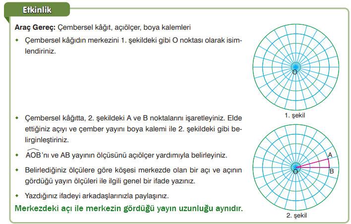 7.Sınıf Matematik Ders Kitabı EDAT Yayınları 247-250-251-255-256. Sayfa Cevapları Çemberde Merkez Açılar ve Merkez Açıların Gördükleri Yaylar
