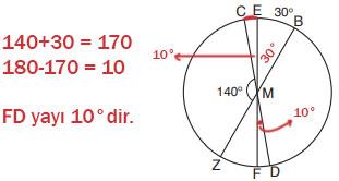 3. Yandaki M merkezli çemberde [ZB], [CD] ve [EF] çap, m(CMZ) = 140° ve EB yayının ölçüsü 30°dir. Buna göre FD yayının ölçüsü kaç derecedir?