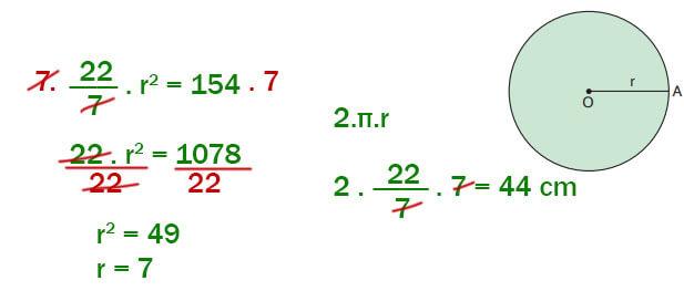 2. Yandaki O merkezli dairenin alanı 154 m2 olduğuna göre sınırı olan çemberin çevre uzunluğu kaç m’dir (π’yi 22/7 alınız.) ?