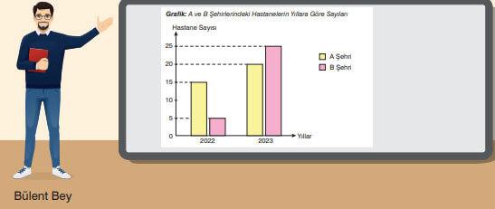 Cevap: Bülent Bey iki farklı veriyi karşılaştırmak için sütun grafiğini; iki veya daha fazla veriyi karşılaştırmak için daire grafiğini ve bazı verilerin zaman içerisindeki değişimini göstermek için çizgi grafiğini kullanmış olabilir.