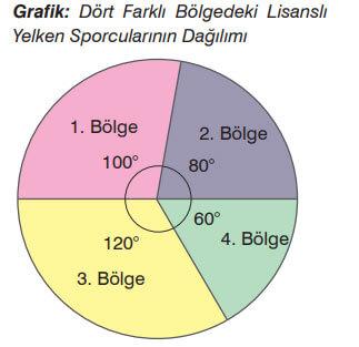 1. Dört farklı bölgedeki lisanslı yelken sporcusu sayıları yandaki sütun grafiğinde verilmiştir.
