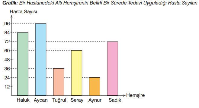 3. Bir hastanedeki altı hemşirenin belirli bir sürede tedavi uyguladığı hasta sayıları yandaki tabloda verilmiştir. Tablodaki verileri sütun grafiği ile gösteriniz.