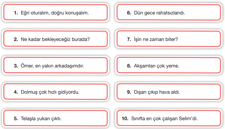 Aşağıdaki soruları numaralandırılmış cümlelere göre cevaplayınız.