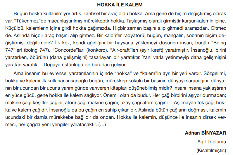 4. Her çağın mutlaka bitmesi ancak “hokka ve kalem” çağının asla bitmemesinin sebebi nedir? Yazınız.