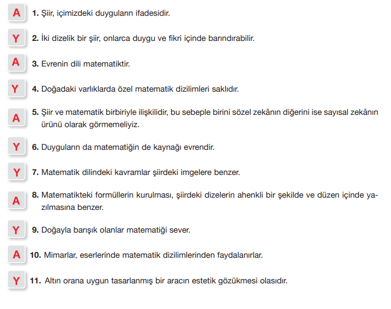 6. Matematik ve şiirin birbirine benzediği fikrine katılıyor musunuz? Gerekçeleriyle açıklayınız.