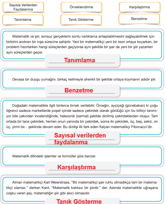 7.Sınıf Özgün Yayınları Türkçe Ders Kitabı 12-14-15-16-17-18. Sayfa Cevapları Matematiğin Şiirselliği