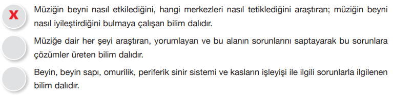 a) Metinde geçen “nöromüzikoloji” ifadesinin anlamını tahmin ederek işaretleyiniz.