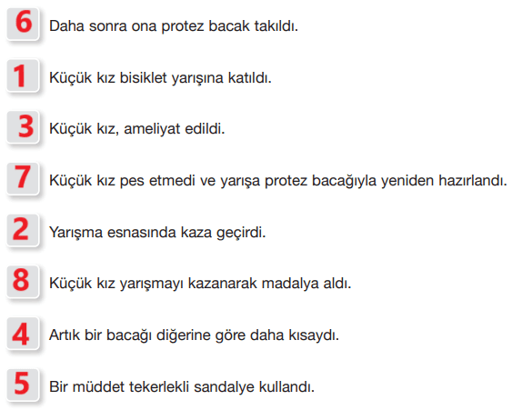 a) Küçük kızın kaza geçirmesi ve protez bacakla yaşamına devam etmesi, hayallerinin önünde engel oldu mu? Bu öyküden kendimize hangi dersleri çıkarmalıyız? Bu konudaki düşüncelerinizi, hazırlıksız bir konuşma ile sınıf arkadaşlarınızla paylaşınız.
