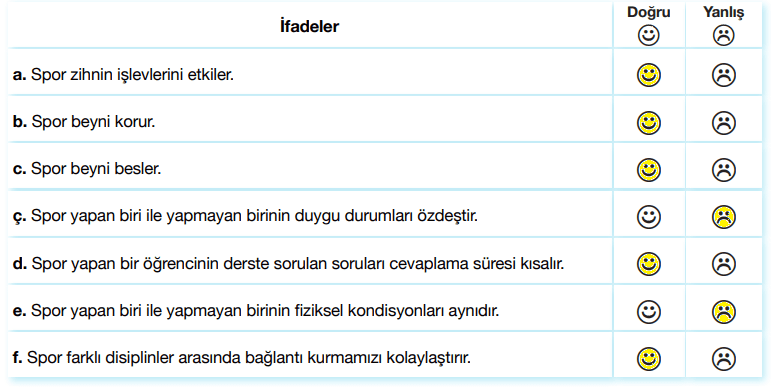 1. Aşağıda verilen ifadelerin doğru mu yoksa yanlış mı olduğuna karar vererek uygun emojiyi boyayınız.