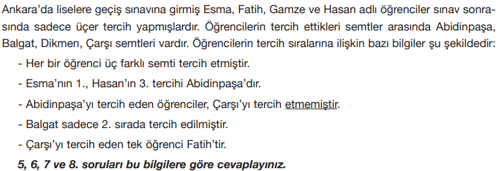 Cevap: A) Esma’nın 3. tercihi Dikmen’dir.