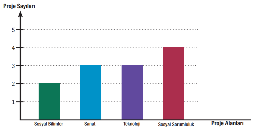 Aşağıdaki grafikte bir grup ortaokul öğrencisi tarafından 2018 yılında hazırlanan proje sayıları verilmiştir. Grafiği inceleyiniz.