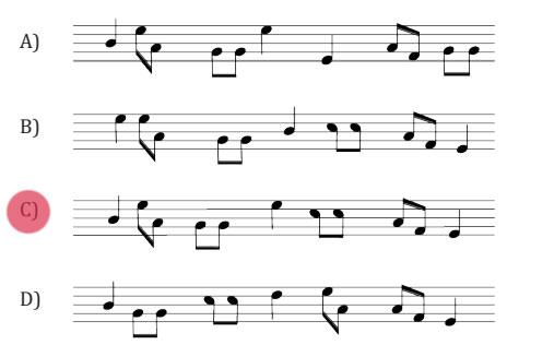 B) Anlamı verilen atasözü ve deyimlerin nota şeklindeki sembollerini inceleyiniz. Atasözü ve deyimlerin “Nane Limon Kabuğu” şarkısındaki kullanım sırası düşünüldüğünde bu atasözü ve deyimlere karşılık gelen notaların sıralanışı aşağıdakilerden hangisidir?
