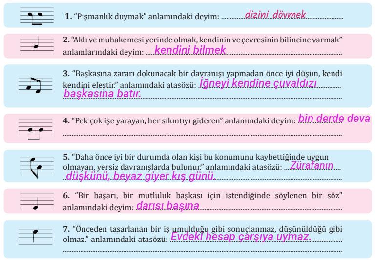 1. Defterinize yazdığınız şarkının sözlerini arkadaşlarınızla paylaşınız. Bu sözleri neden sevdiğinizi açıklayınız.