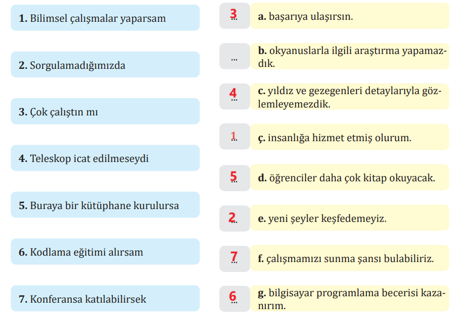 Aşağıdaki koşul ifadelerini sonuç ifadeleriyle örnekteki gibi eşleştiriniz.
