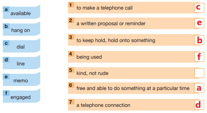 2. Match the words with the correct definitions. Then, listen and check. One definition is extra.