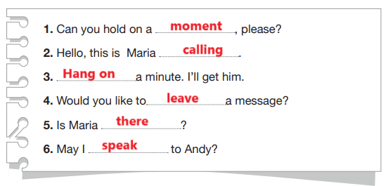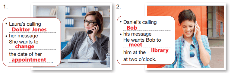 Çeviri: Çiftler halinde çalışın. Dinleme Alıştırması 2’deki gibi bir telefon görüşmesi yazın. Arkadaşınızla rol yapın.