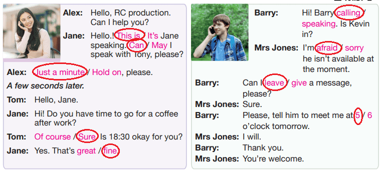 Çeviri: Telefon görüşmelerini dinleyin ve doğru kelimeleri/ifadeleri daire içine alın.