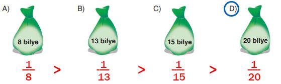 1. Aşağıdaki torbalarda kaç bilye bulunduğu torbaların üzerinde belirtilmiştir. Torbaların her birinde sadece 1 beyaz bilye olduğuna göre hangi torbadaki beyaz bilyenin çekilme olasılığı en azdır?