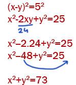 x – y = 5 ve x · y = 24 olduğuna göre x² + y² ifadesinin değerini bulunuz.