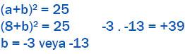ç) Toplamlarının karesi 25 olan iki tam sayıdan biri 8 ise diğerinin alabileceği değerlerin çarpımı kaçtır?