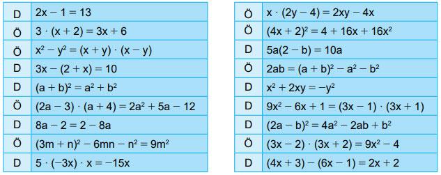1) Aşağıdaki ifadelerden özdeşlik olanların başına “Ö”, denklem olanların başına “D” yazınız.