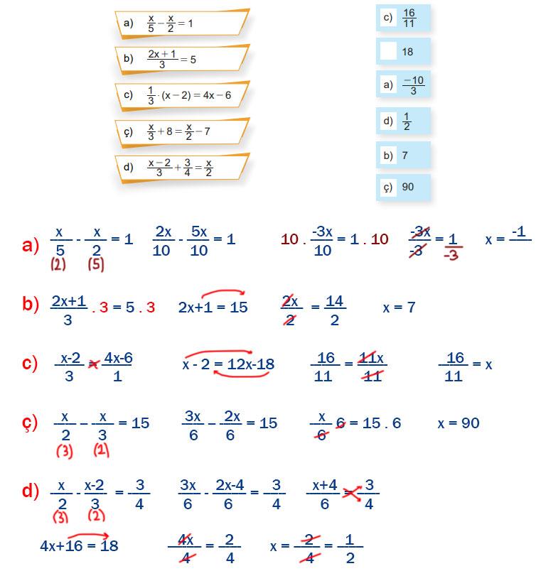 6) Aşağıdaki denklemler ve bu denklemleri sağlayan değerleri eşleştiriniz.