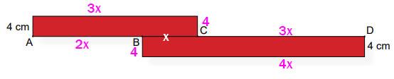 7) Kısa kenar uzunlukları 4 cm olan dikdörtgen şeklindeki iki levha, aşağıdaki gibi yerleştirilmiştir.