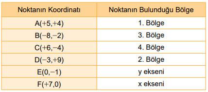 Buna göre aşağıdaki noktaların kaçıncı bölgede olduklarını karşılarına yazınız.
