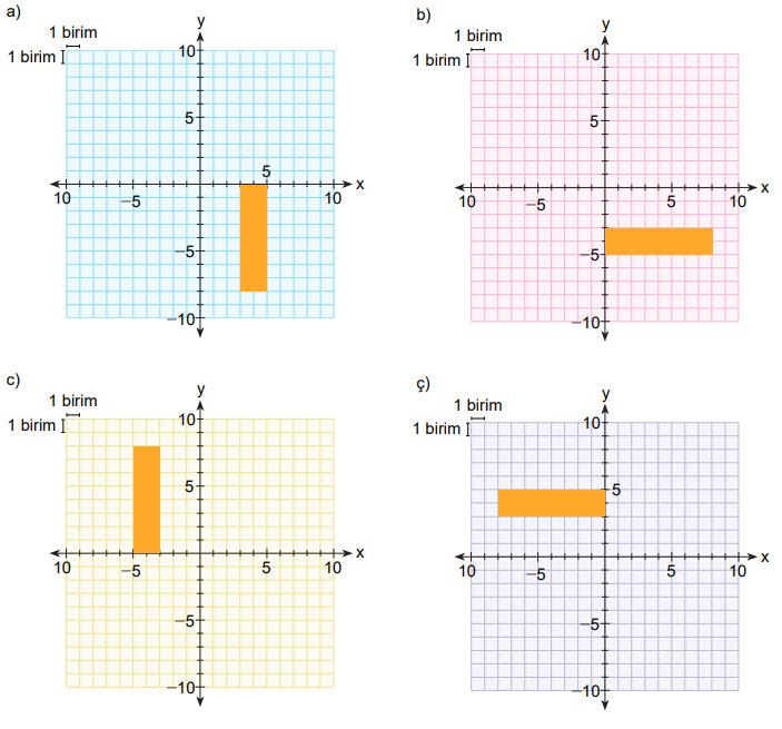 Verilen dikdörtgeni şartları sağlayacak şekilde aşağıdaki dört dik koordinat sisteminde konumlandırınız.
